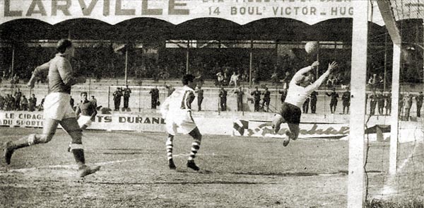 que les petits supporters se dépêchaient d'aller récupérer à la Boutique du club. Le portrait de notre intrépide gardien Frédéric Le Goff qui ornait cette vignette n'allait pas lui porter chance car il se blessait en fin de première période, ce qui allait l'obliger à suivre la fin de la saison depuis notre Infirmerie.... heureusement, ses coéquipiers avaient assuré le coup et c'est Merlin "Pantelis" Nativel qui avait ouvert le score en reprenant une passe millimétrée de David Piquet. Une magnifique combinaison au centre du terrain se terminait par une autre passe décisive, signée Bruno Margerin cette fois, et c'est Cyril Salvetat qui se chargeait de conclure. En seconde période, les Crocodiles semaient le doute chez les supporters locaux en réduisant l'écart à l'heure de jeu, mais la défense tenait bon et Rached Tamisier faisait bonne garde dans les buts. C'est une courte mais précieuse victoire 2 - 1 qui s'affichait au tableau et elle permettait à nos amis de grimper provisoirement sur la deuxième marche du podium. Le titre est désormais hors d'atteinte, mais la bataille pour les places d'honneur va être rûde !